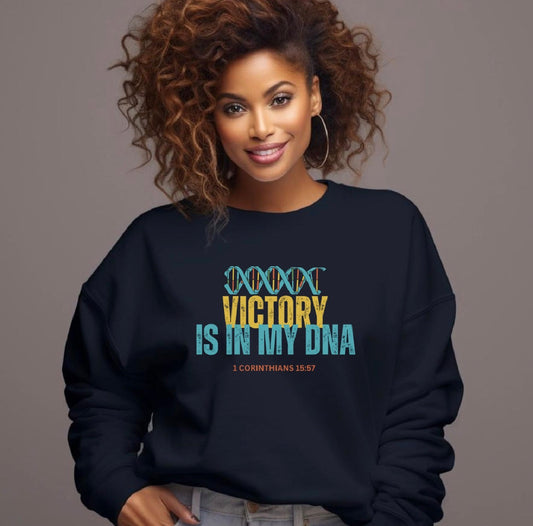 Victory Is In My DNA Sweatshirt — Christian Inspirational Crewneck (1 Corinthians 15:57)